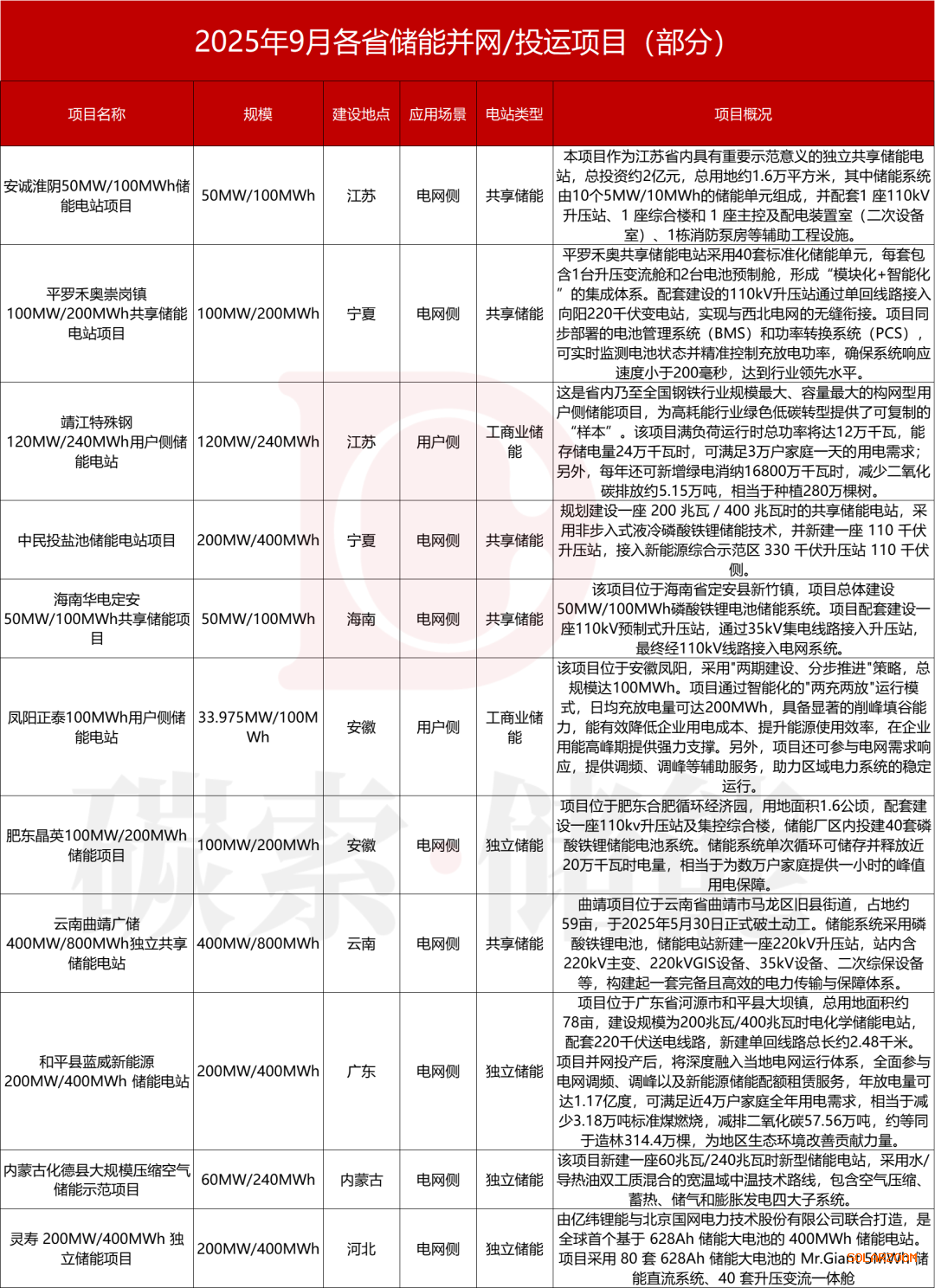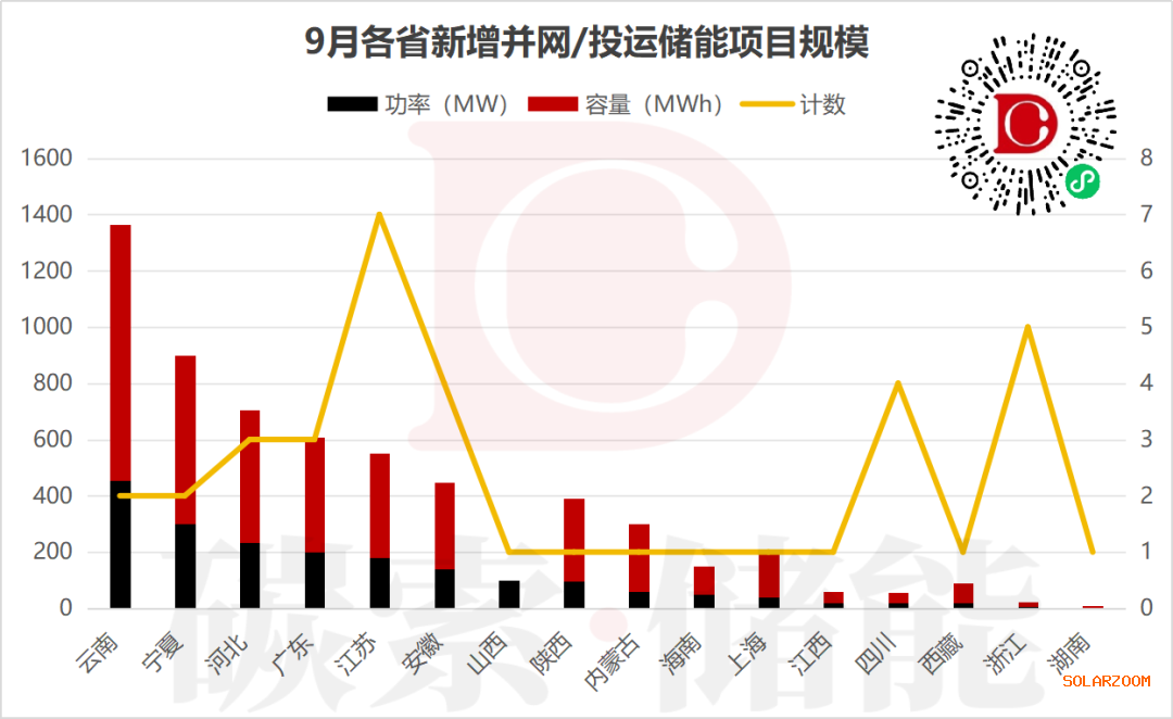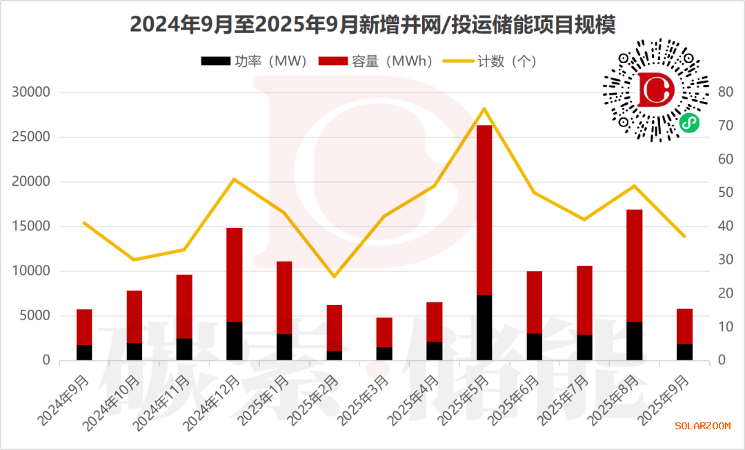 9月,全国储能并网/投运新增项目呈现“数量与规模双降”态势。