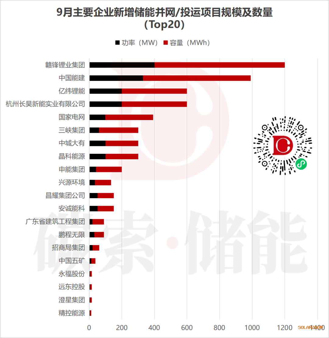 企业参与度方面,赣锋锂业集团、中国能建等企业在9月新增储能并网/投运项目的功率和容量上表现突出,位居前列。这些企业凭借自身的技术实力、资源整合能力以及项目经验,在储能市场中占据重要地位,推动着储能项目的落地实施,也促进了行业内的竞争与合作,加速技术创新与产业升级。